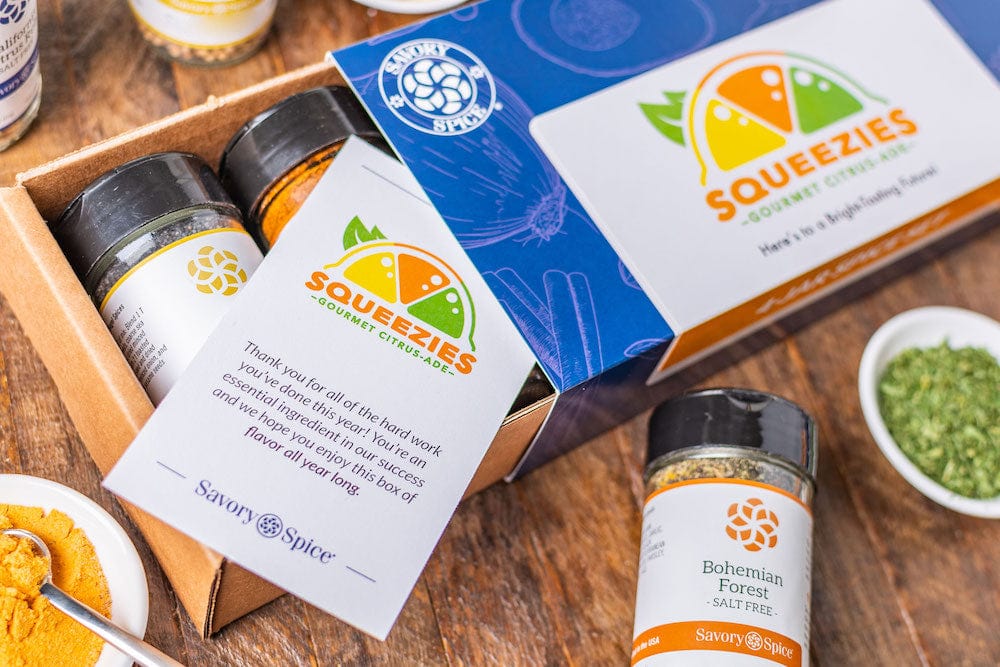 Savory Spice makes gifting easy, memorable, and delicious. Turn everyday cooking into an experience they’ll remember that keeps your brand on their minds (and their plates).