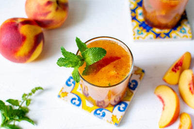 This is the perfect cocktail for peach season. It's refreshing and sweet, spiked with a sugar-based seasoning inspired by the classic flavor profile of spiced peaches.