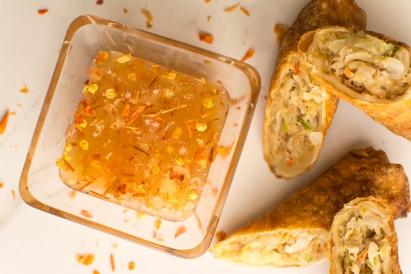 Combine ingredients In a small bowl, dissolve corn starch in 1/4 cup water and set aside. In a small pot, bring vinegar, sugar, soy sauce, sherry, Minced Garlic, and choice of chile powder to a boil over medium-high heat, stirring frequently.