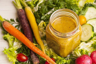 This delicious dressing is super easy and quick to whip up. Try it with your favorite mix of dark greens!