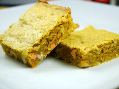 Preheat oven to 350 degrees. Blend butter and brown sugar. Add in extracts, egg and bourbon. In a small bowl, sift together flour, salt and curry powder then combine with wet ingredients. Stir in butterscotch chips, coconut and nuts. Pour into an 8x8 inch baking dish and bake for 25 to 30 min.