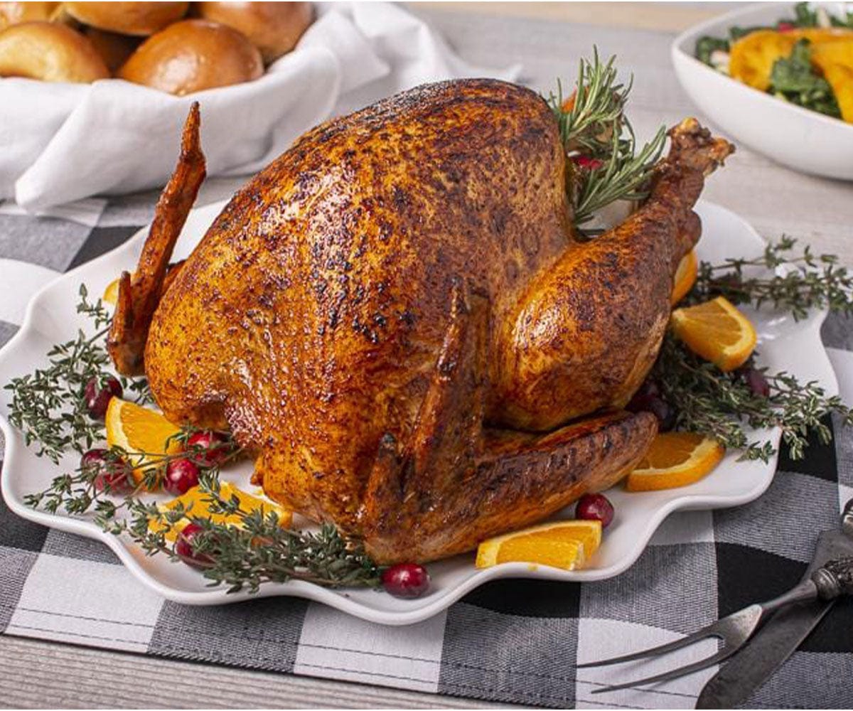 A succulent turkey with richly flavored meat and perfectly glazed with flavors of maple, orange, and summer savory.