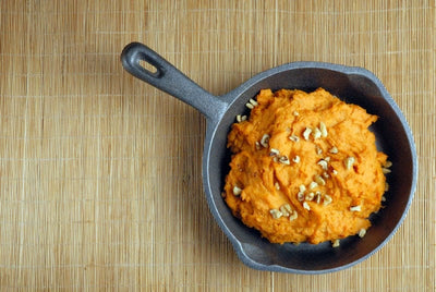 Preheat oven to 400 degrees. Clean sweet potatoes and poke a few holes in each with a fork or paring knife. Rub with oil to lightly coat. Place on a large, foil-lined baking sheet and bake for 45 min. to 1 hour or until easily pierced to the center with a fork, 45 min. Remove from oven and let cool until comfortable to handle. Peel skins add flesh to the bowl of a stand mixer fitted with the whisk attachment. Add remaining ingredients and whisk at medium speed, stopping to scrape down sides of the bowl as needed, until smooth. Transfer to a dish to serve or cover and place in a warm oven until ready to serve. Finish with Whiskey Barrel Smoked Black Pepper on top.