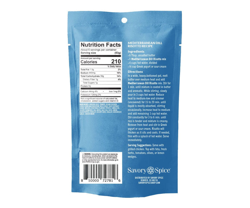 Our Mediterranean risotto recipe mix is herby, salty, and creamy in flavor, with savory and aromatic notes.