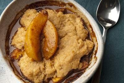 For topping:In a large bowl, combine flour, white sugar, brown sugar, Supreme Saigon Cinnamon, baking powder, Mayan Sea Salt, and butter. Blend with fingers to a coarse meal consistency. Add the warm lemon juice and stir to just combined. Remove peaches from oven and spoon equal dollops of dough over each dish. Bake for 30 min. or until tops are golden brown.