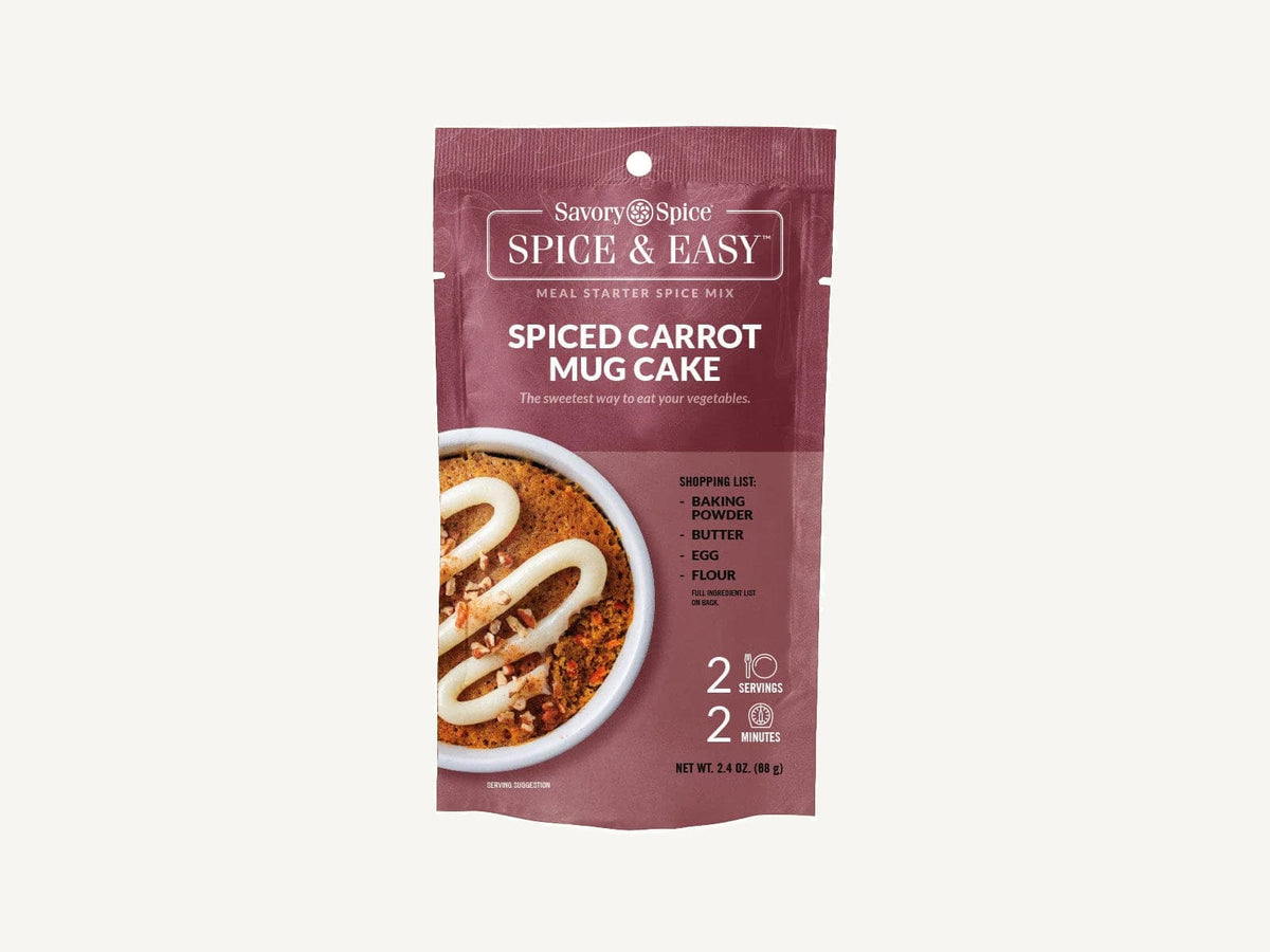 With Spice & Easy, making easy spiced carrot cake is as simple as 1, 2, 3! Just open, spice and serve. Each Meal Starter Spice Mix includes the pre-measured carrot cake ingredients needed to make a quick, simple and tasty mug cake.DIRECTIONS: