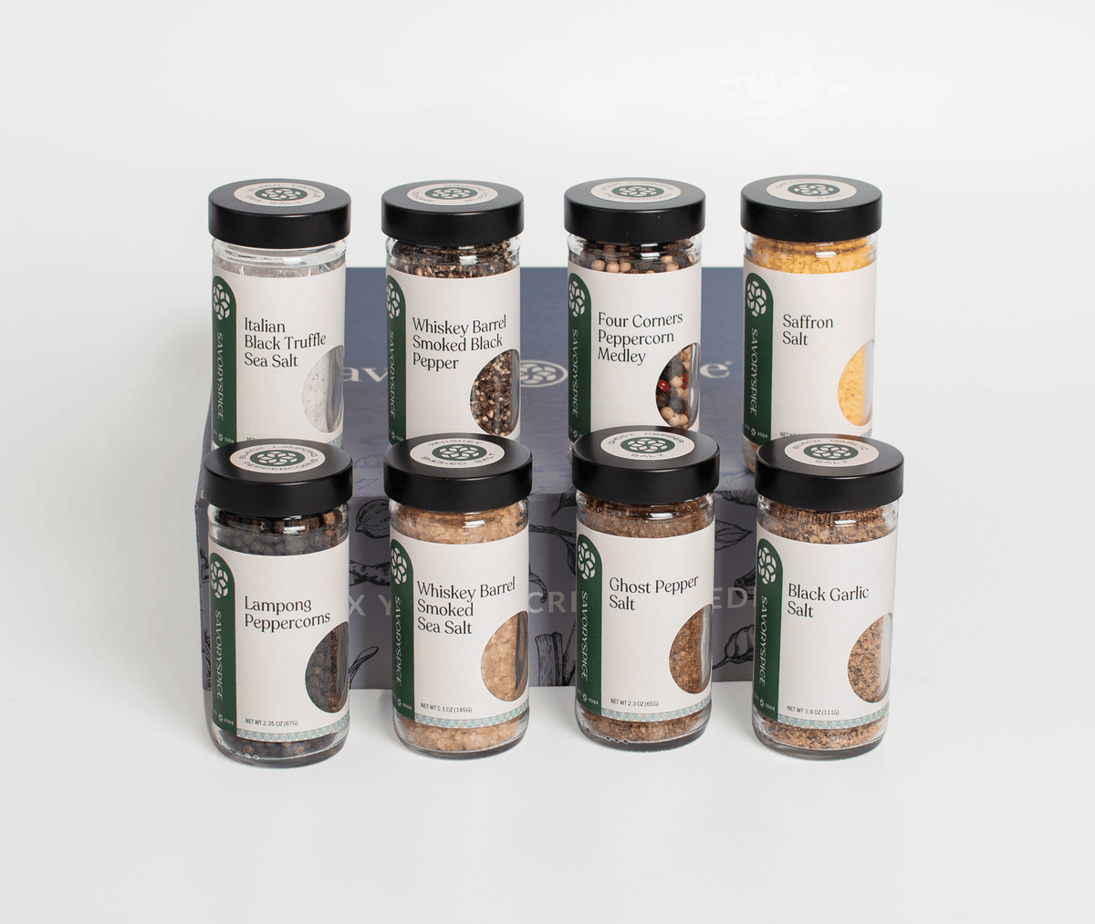 Black Garlic Salt: Himalayan pink sea salt, mayan sea salt, black garlic, gochugaru chile flakes, granulated garlic