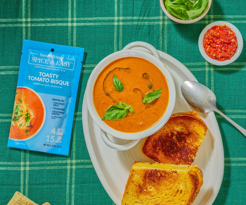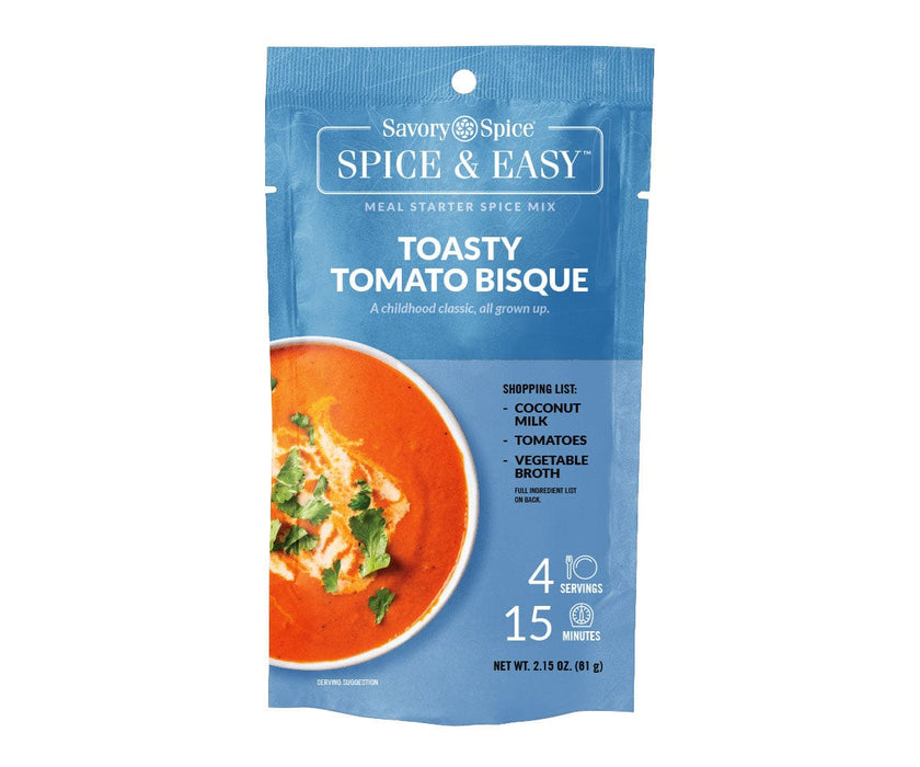 A tomato bisque soup recipe that's easy to make at home! Dairy-free, gluten-free and vegetarian-friendly, this tomato bisque mix elevates classic tomato soup with toasted spices.With Spice & Easy, making homemade tomato soup is as easy as 1, 2, 3! Just open, spice and serve. Each tomato soup bisque mix includes the pre-measured seasonings needed to make a quick, simple and tasty recipe. Find more Spice & Easy soup mixes!