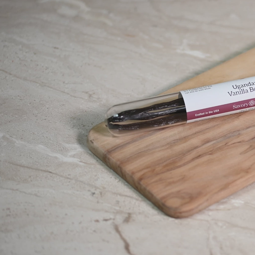 Use the whole pod or cut and remove the inner seeds. The easiest way to obtain the inner seed is to split the bean lengthwise, open the bean up flat and scrape from top to bottom with the edge of a knife. No need to throw away the bean. Try using the vanilla bean skin by adding it to a container of sugar for lightly infused vanilla flavor.